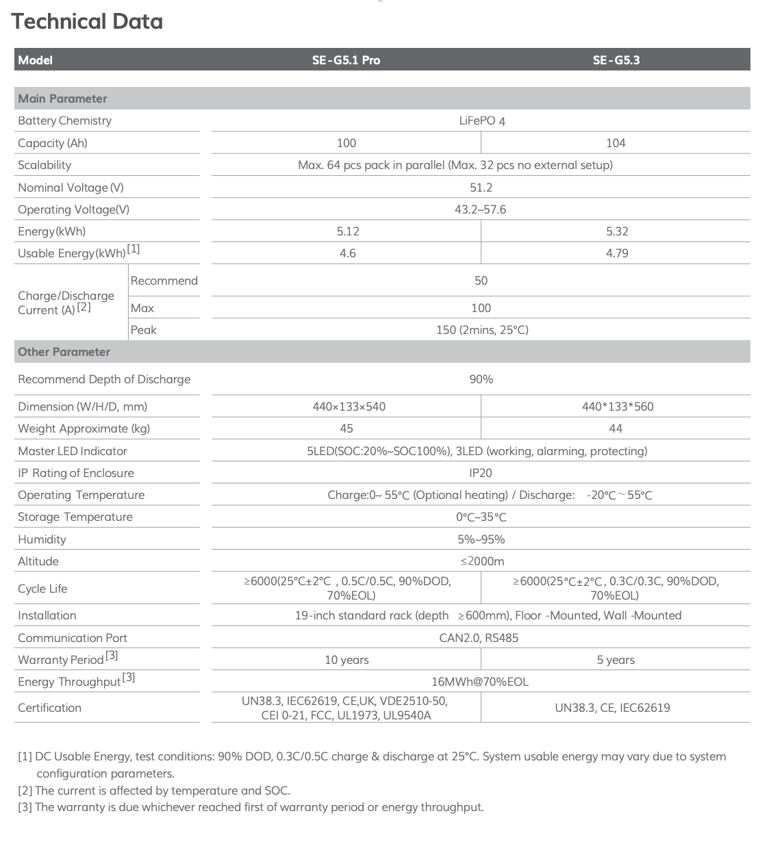 BATERIA DE LITIO DEYE 5.32 KWH 104AH LV 51.2V SE-G5.3 6000 CICLOS