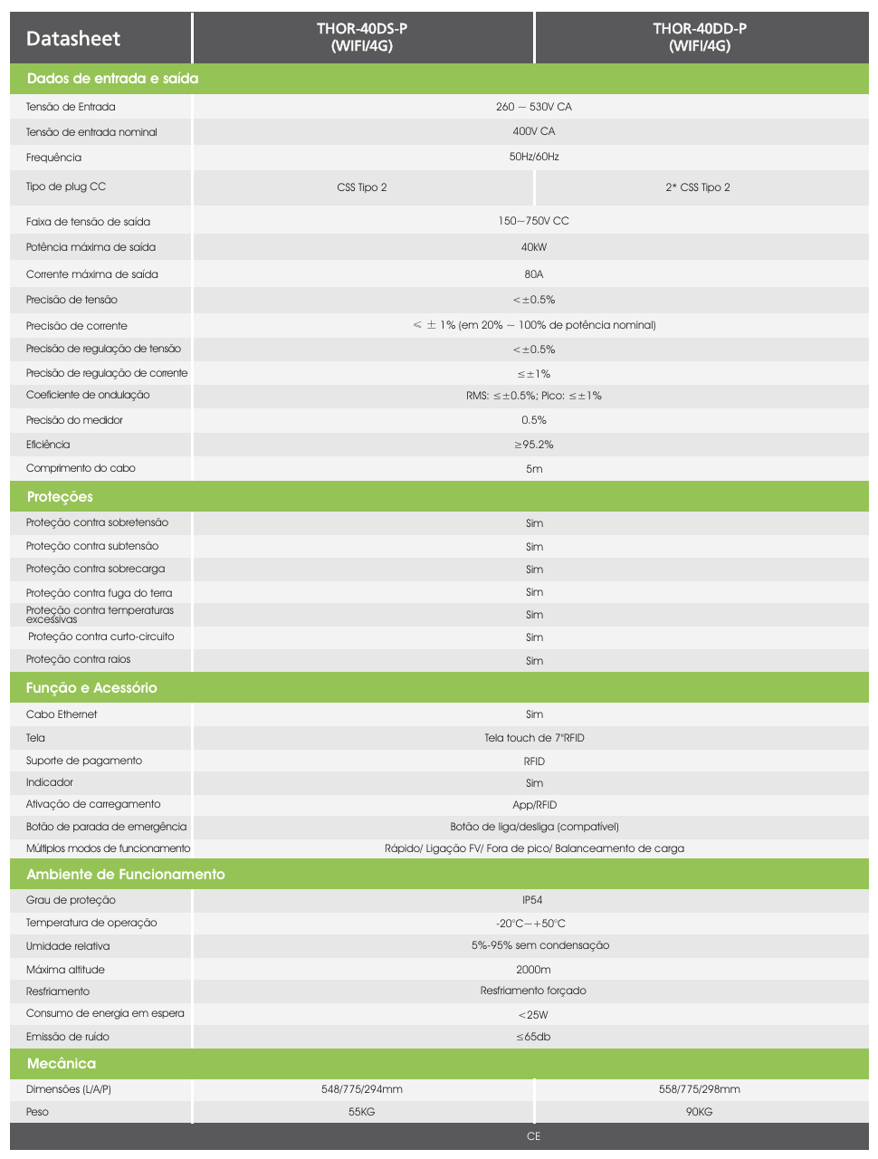CARREGADOR VEICULAR 40KW DUPLO WALLBOX GROWATT T2 TRIF 380V THOR-40DD-P THOR DC