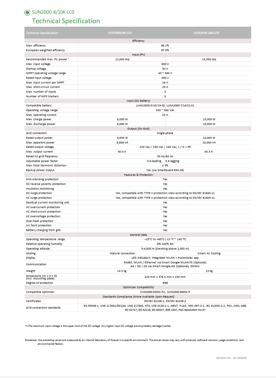 INVERSOR SOLAR MONO 3MPPT 220V 10KW HUAWEI