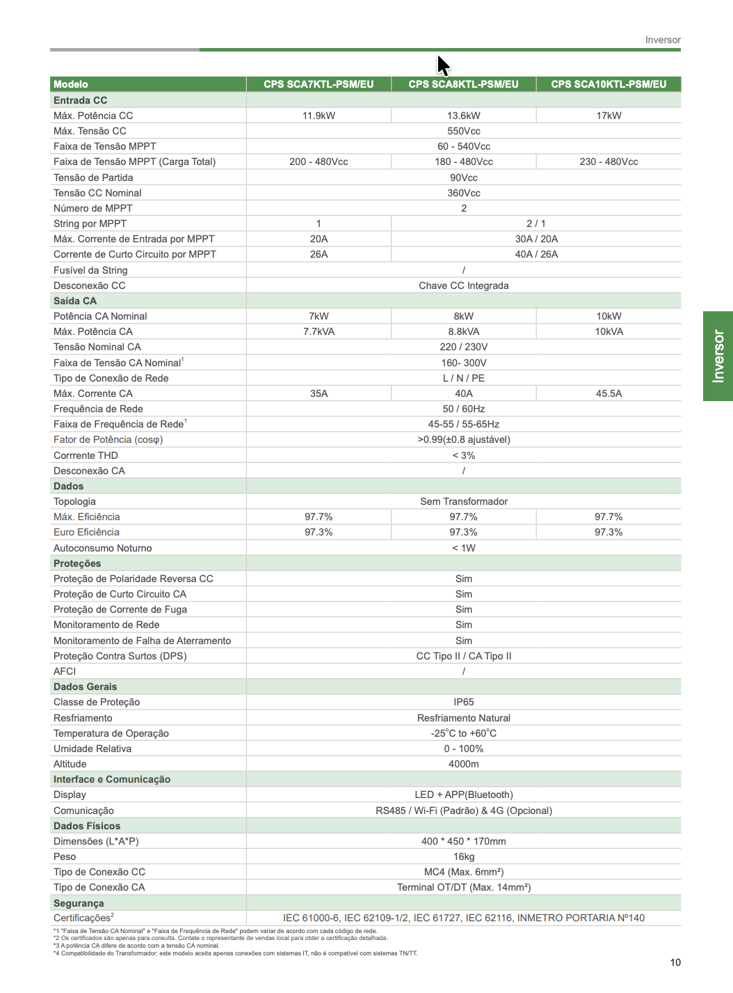 INVERSOR 10KW CHINT POWER MONO 2MPPT CPS SCA10KTL-PSM/EU 220V
