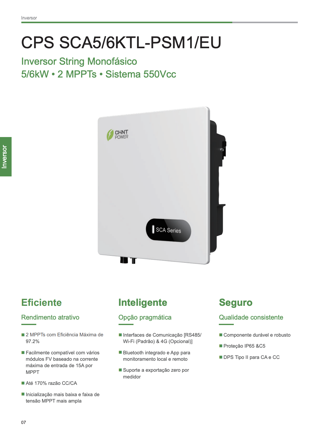 INVERSOR 5KW CHINT POWER MONO 2MPPT CPS SCA5KTL-PSM1/EU 220V