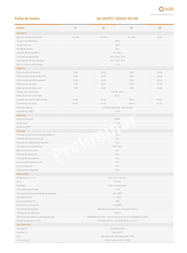 INVERSOR 10KW SOLIS 3MPPT 220V MONO