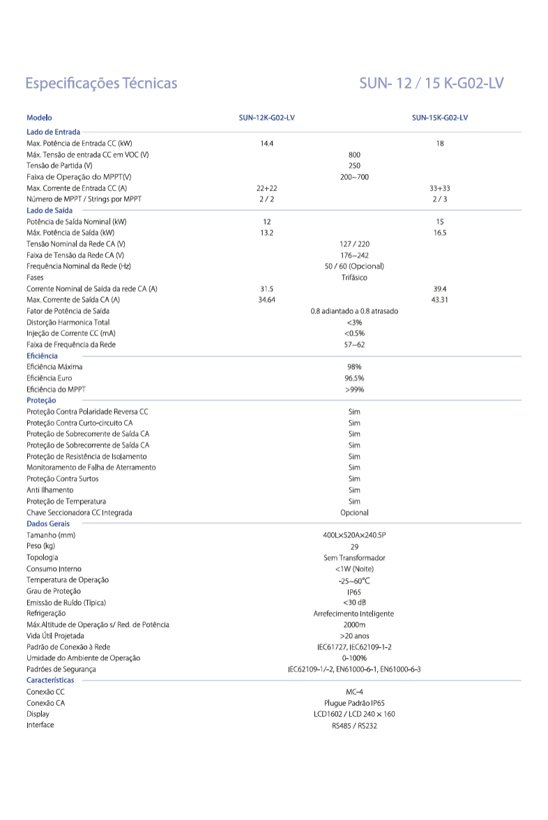 INVERSOR SAJ 15KW 380V TRIFASICO 2MPPT (100% DE OVERLOAD)