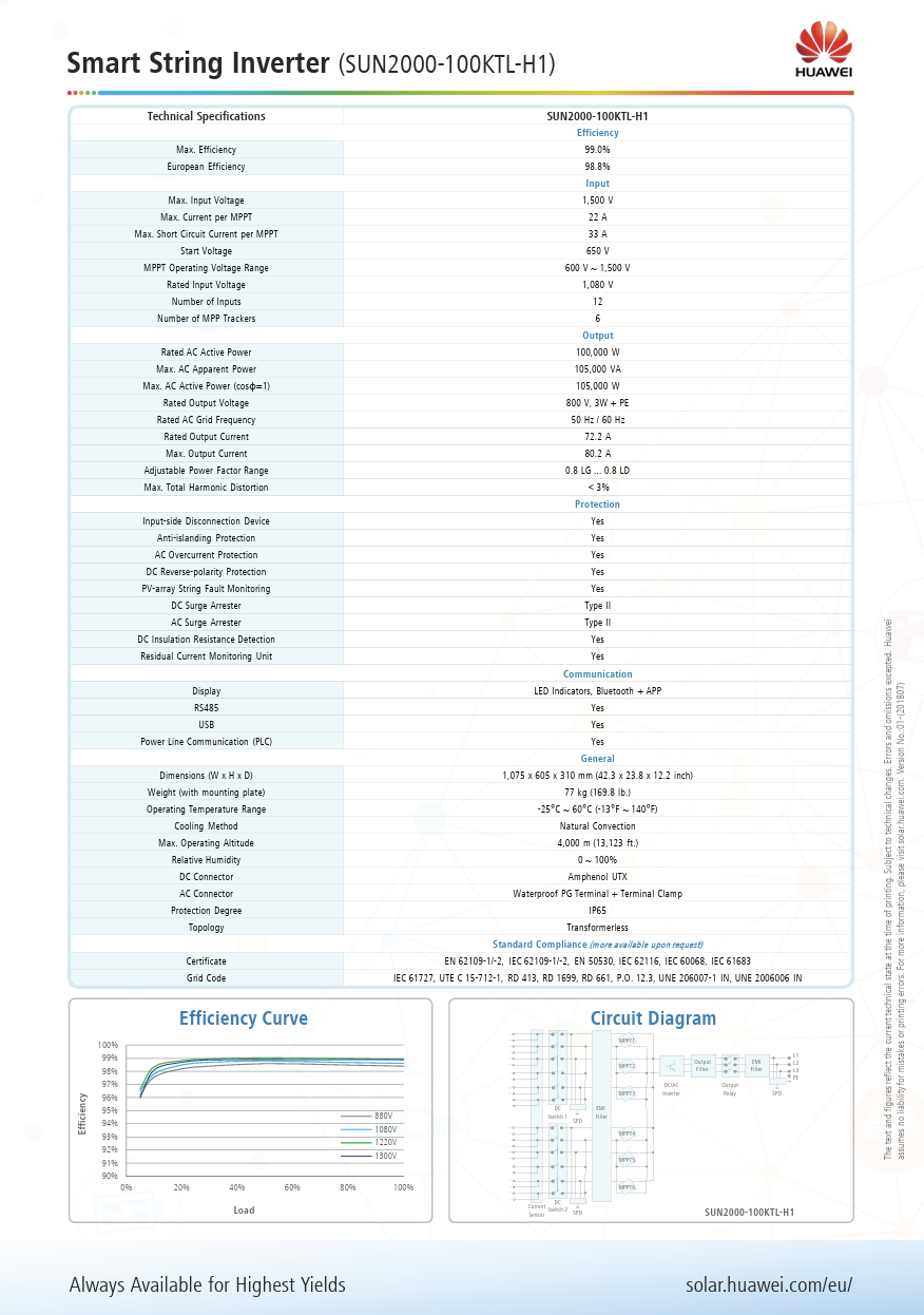 INVERSOR 100KW HUAWEI H1 TRIF 6MPPT 800V