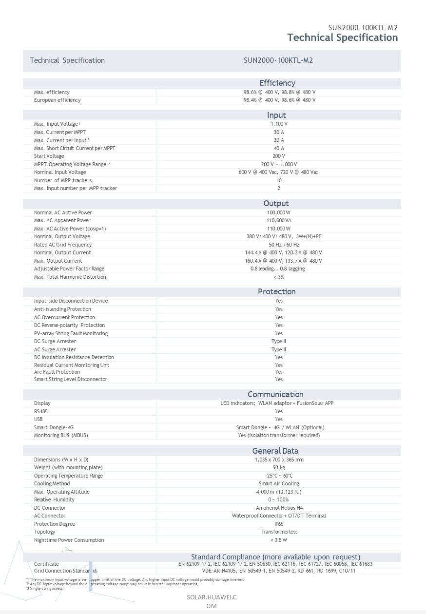 INVERSOR 100KW HUAWEI M2 TRIFASICO 10MPPT 380V