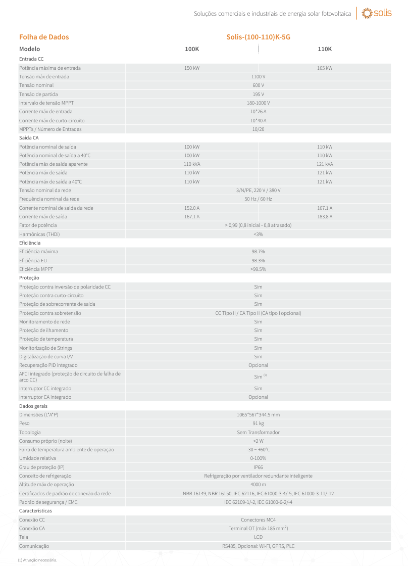 INVERSOR SOLAR 5G PRO TRIFASICO 8MPPT 380V 100KW SOLIS
