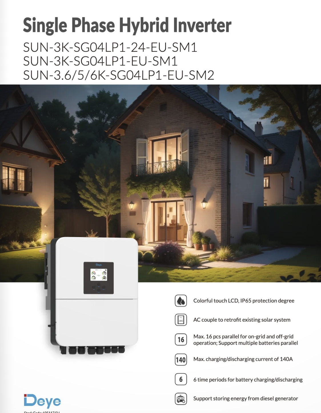 INVERSOR HÍBRIDO 3KW MONO 1 MPPT 220V SUN-3K-SG04LP1-EU-SM1 - AFCI DEYE