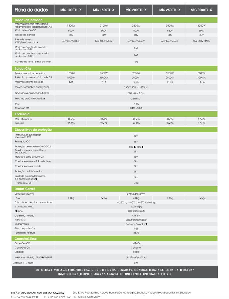 INVERSOR ON GRID 3KW MONO 220V 1 MPPT GROWATT - MIC3000TL-X